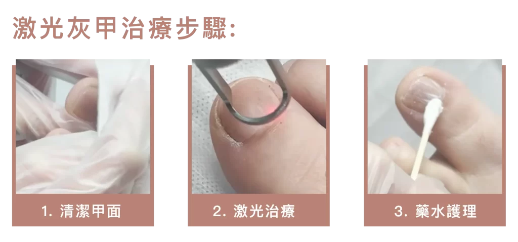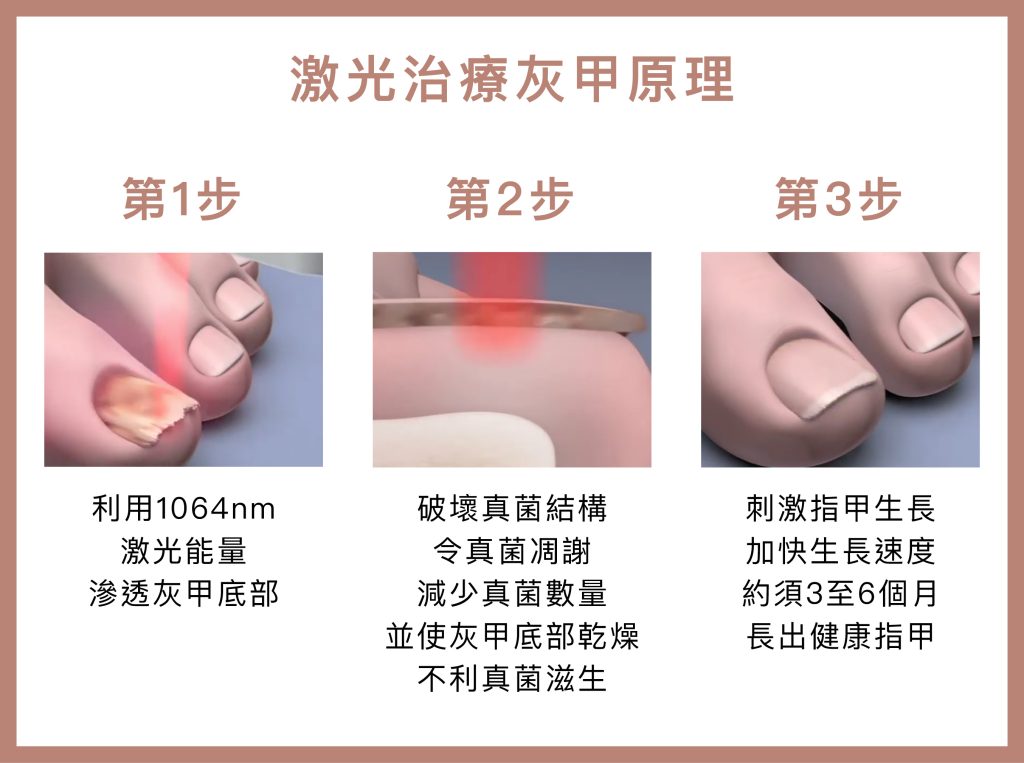 激光灰甲治療,獲美國食品及藥物管理局(FDA)認可,正式核准灰甲的激光治療方式,利用激光的光熱原理殺死真菌,同時加速甲床代謝速度刺激趾甲生長,以達到殺死並較快速排除真菌的效果,且不會造成甲床、甲溝或指甲本身的傷害。
